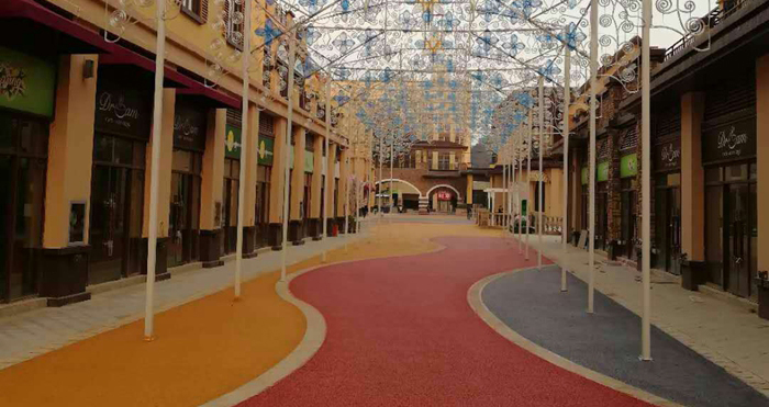 彩色陶瓷顆粒路面應用特點: 1:防滑性能好: 陶瓷顆粒路面可以增加路面的干燥和雨天抗滑性能,縮短剎車距離達40%以上,減...